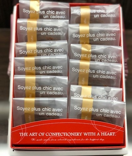 生チョコ焼き12個入り チョコレートをふんだんに練り込み、独自の製法でしっとりと焼き上げた焼きチョコです。濃厚な味わいとやさしい口どけをお楽しみいただけます。 ¥3,880(税込) ※賞味期限の目安:常温(25℃以下)で20日間、冷蔵で40日間
