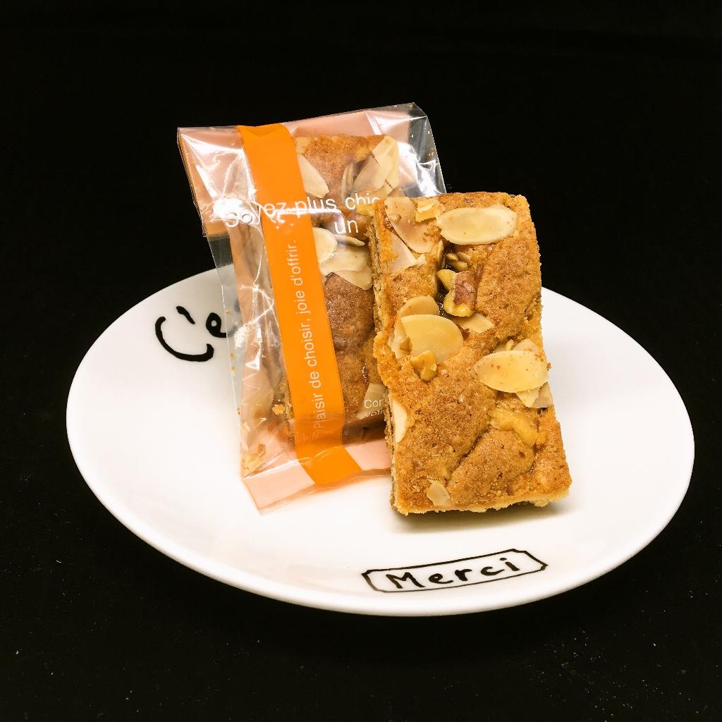 パイ生地とサブレ生地を、かたつむりのように渦巻き状に重ねて焼き上げました。サクサクとした食感と香ばしい風味をお楽しみいただける焼菓子です。